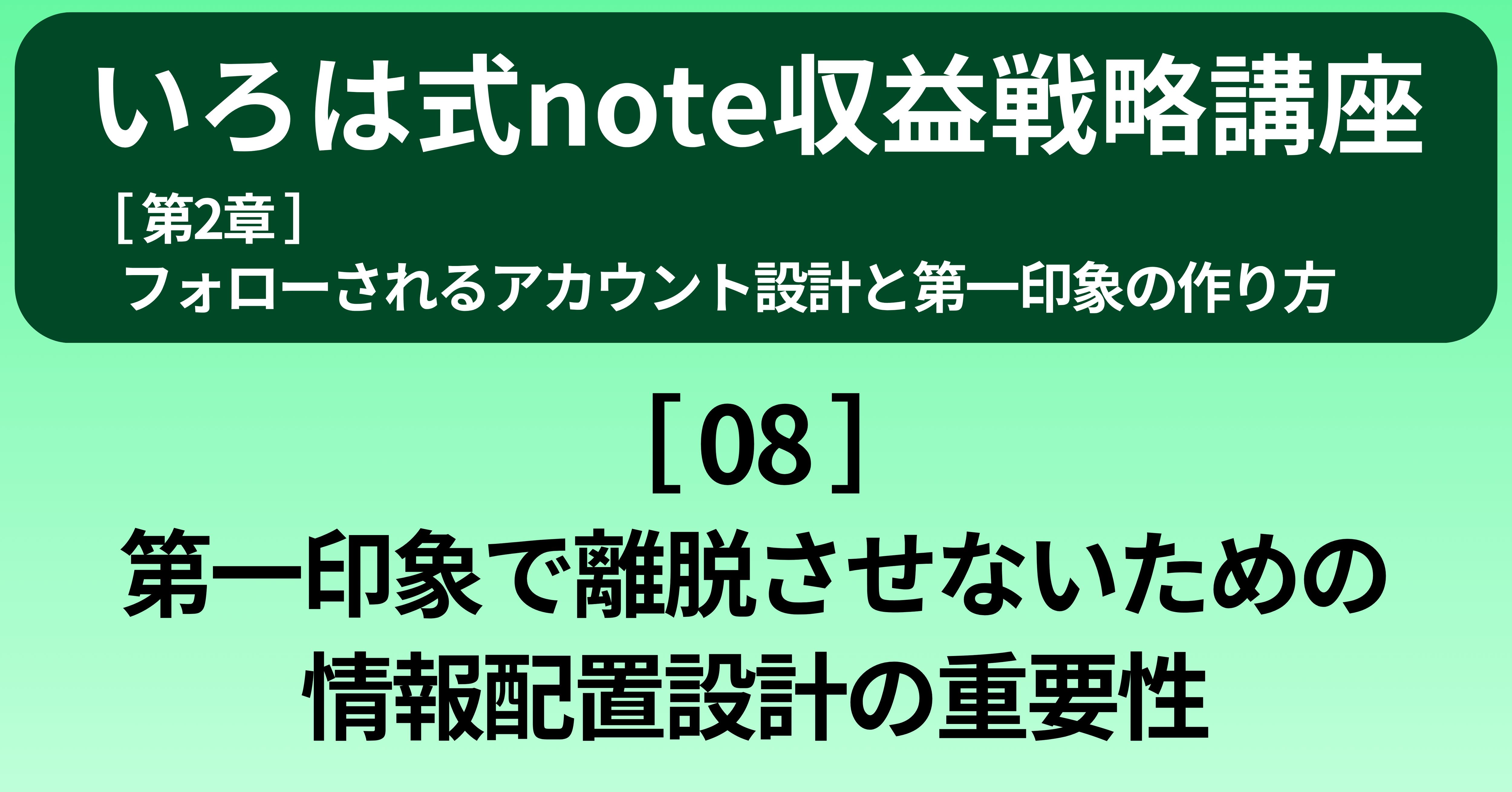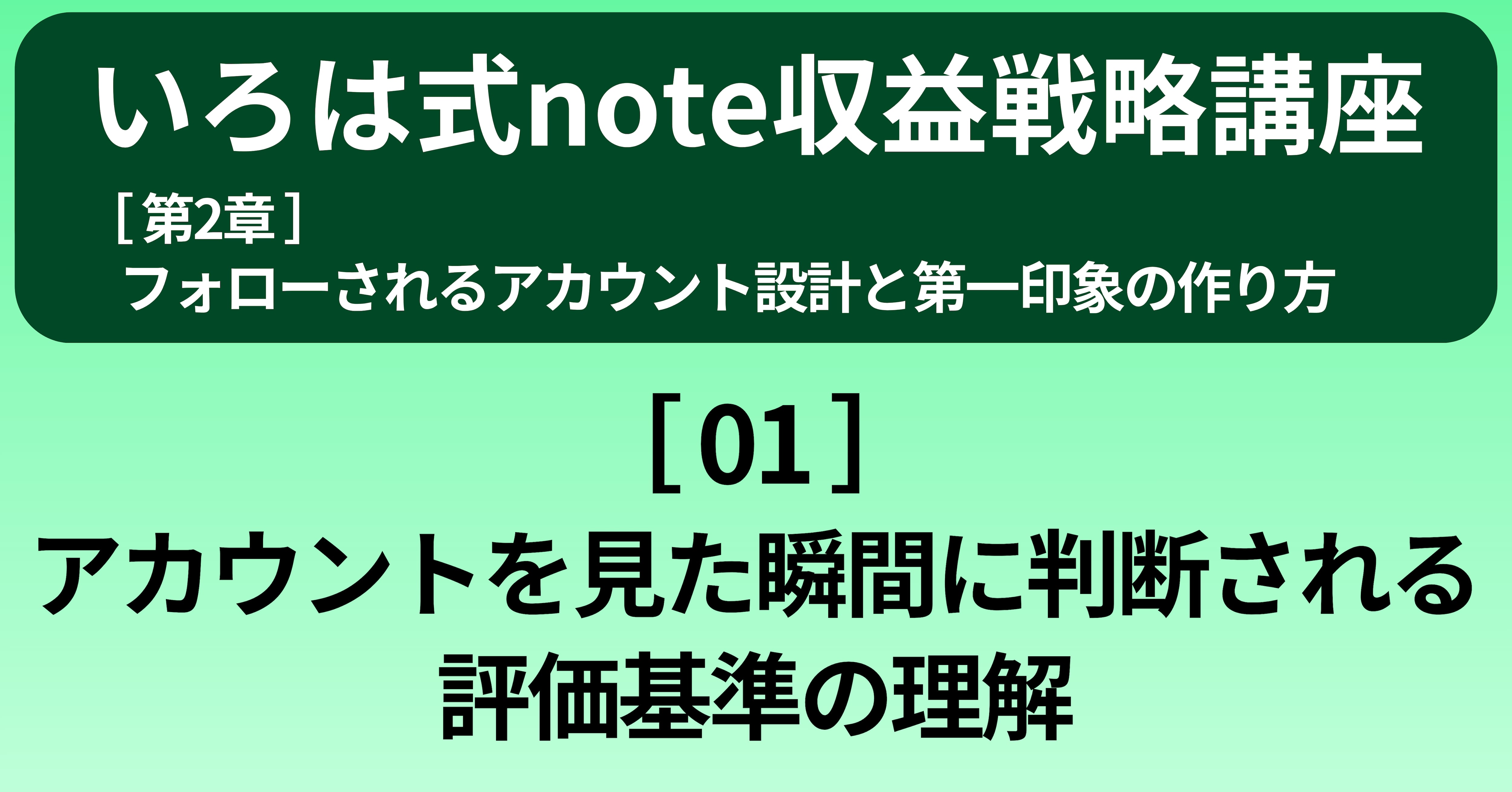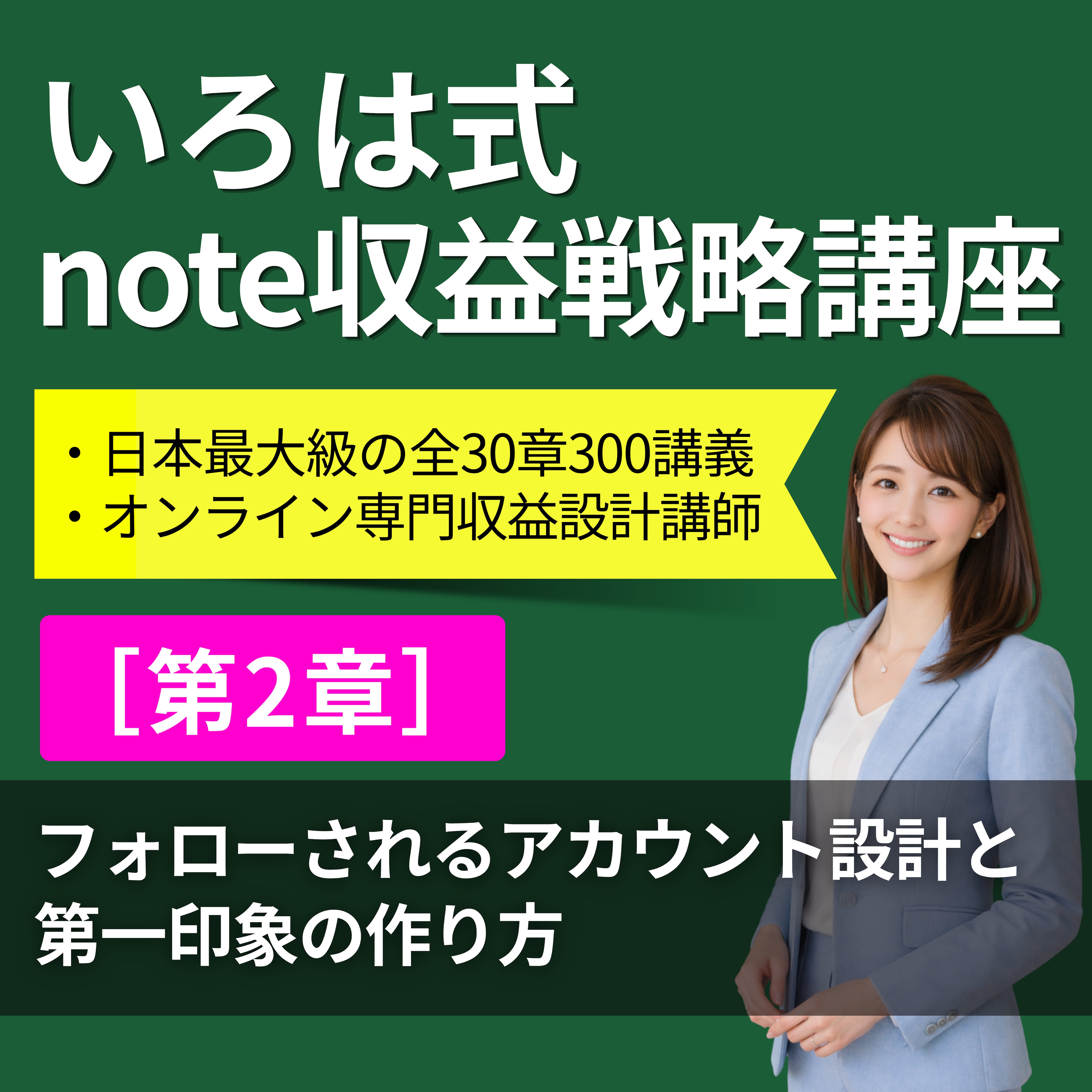 いろは式note収益戦略講座[第2章]フォローされるアカウント設計と第一印象の作り方|✅視覚理解×実践設計のスライドカリキュラム [全30章・300講義]