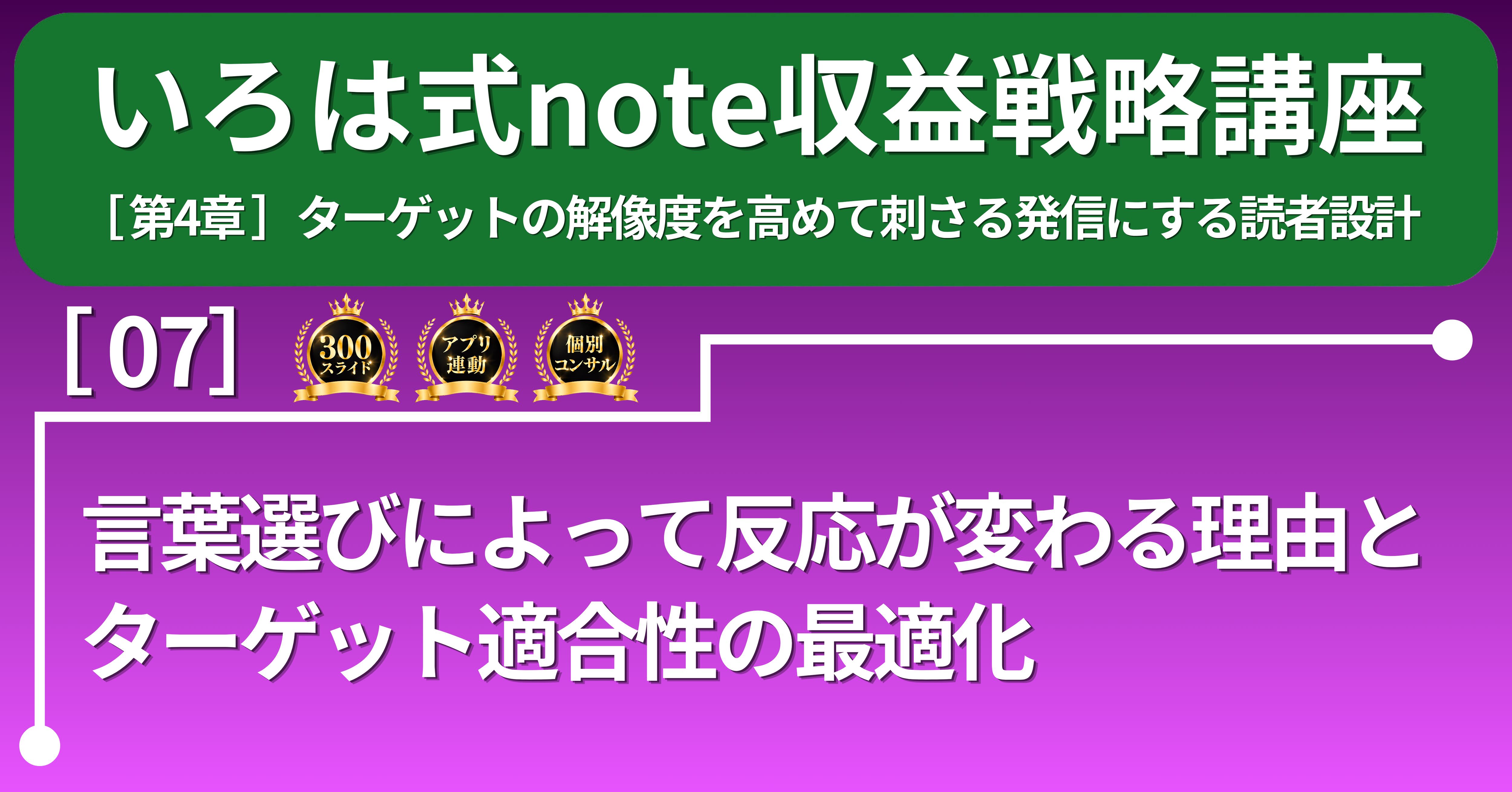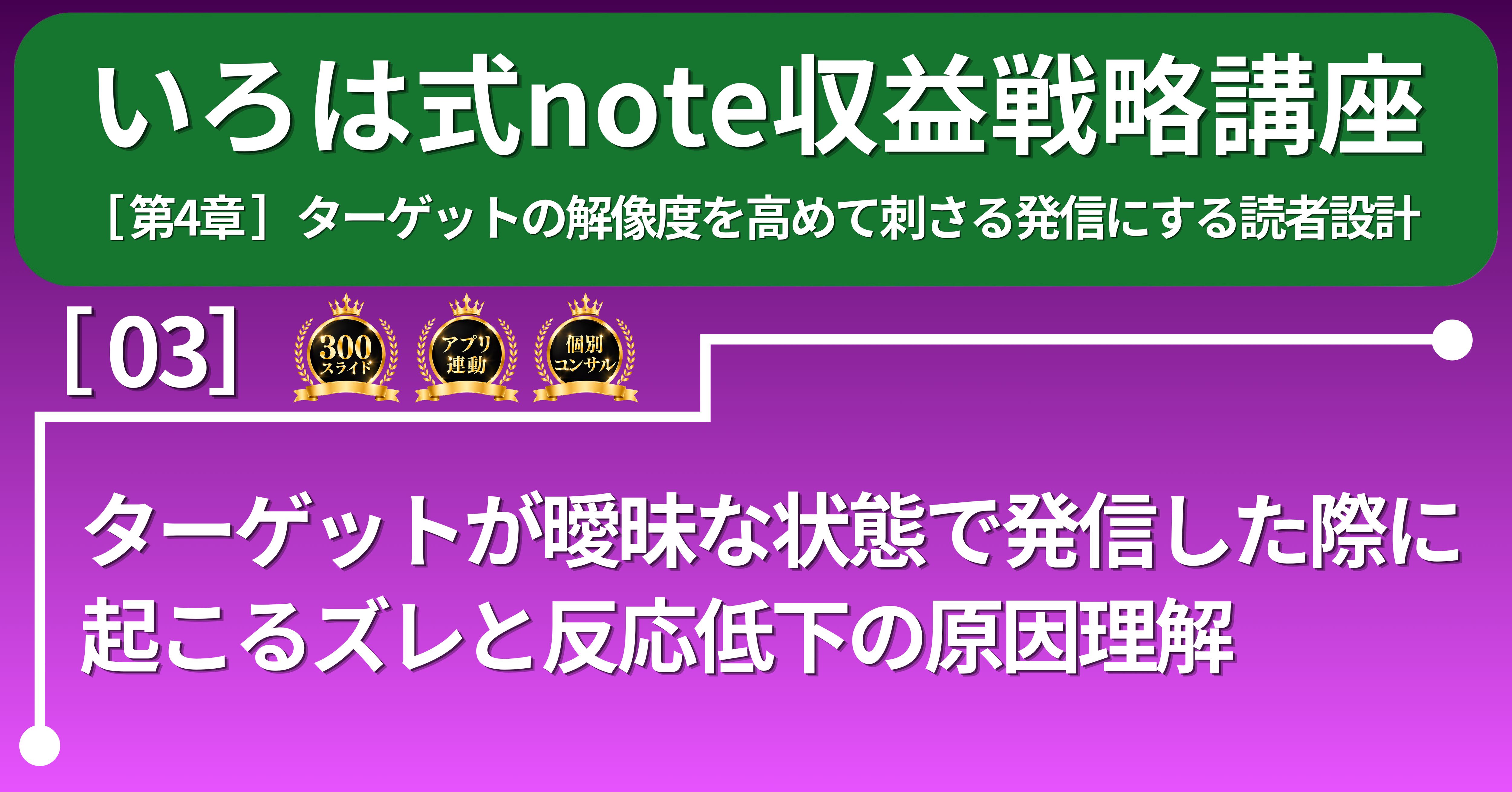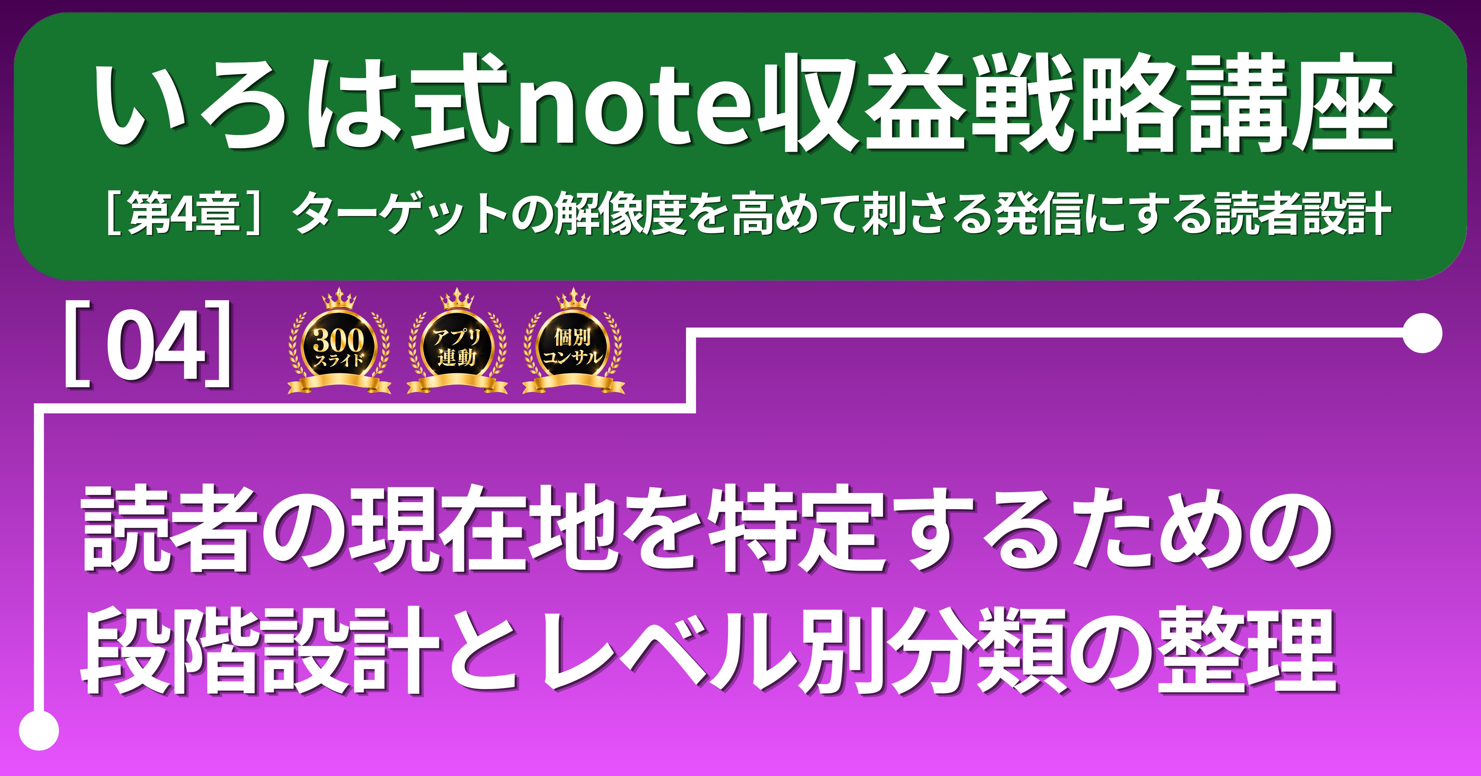 いろは式note収益戦略講座[第4章]ターゲットの解像度を高めて刺さる発信にする読者設計|✅視覚理解×実践設計のスライドカリキュラム [全30章・300講義]